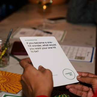 Whether they came solo or with a crew, every creative got a conversation starter kit—complete with our giant Creative Kin decks—to spark conversations, connections, and maybe a little friendly debate. The scavenger hunt bingo game was another hit, helping guests break the ice and work the room. Between swapping socials, planning coffee meetups, having aha moments, and getting new headshots (shoutout to our in-house photographer, Lola!), no one left empty-handed.